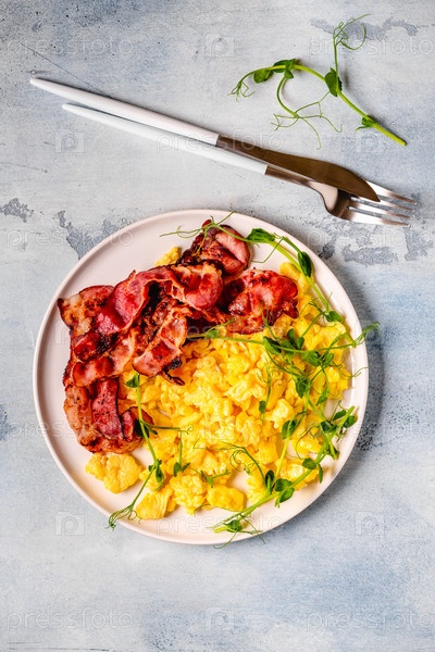 Традиционный завтрак яичница с жареным беконом