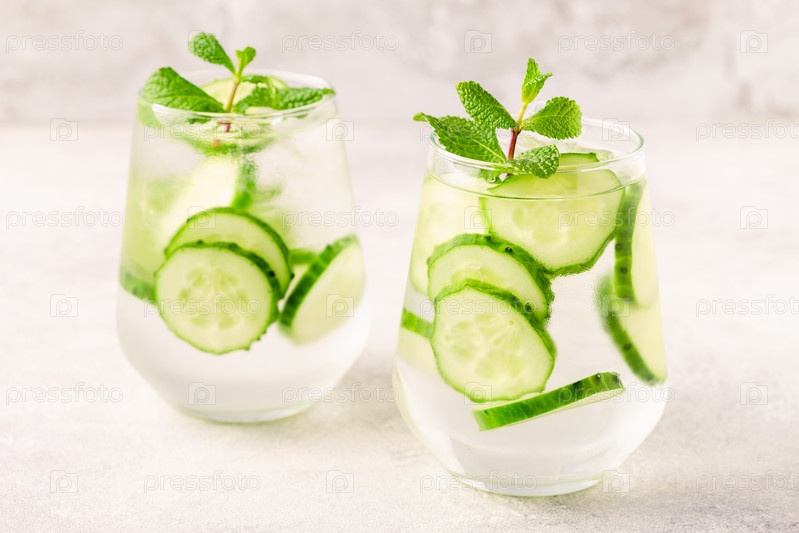 Свежая огуречная вода на светлом фоне