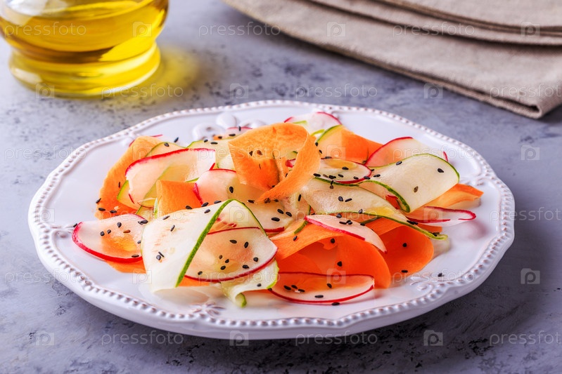 Вегетарианский салат из моркови, огурца и редьки