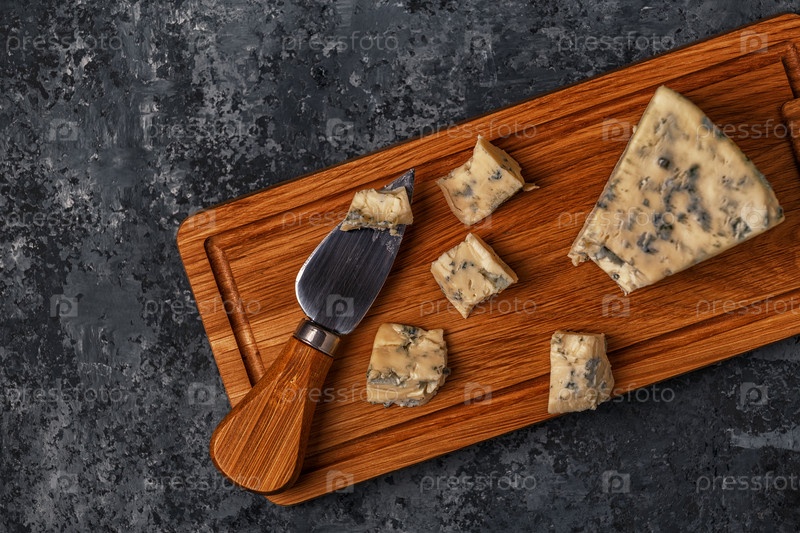 Кусочки голубого сыра на деревянной доске