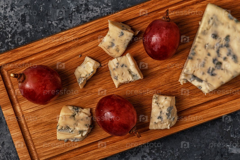 Кусочки голубого сыра на деревянной доске