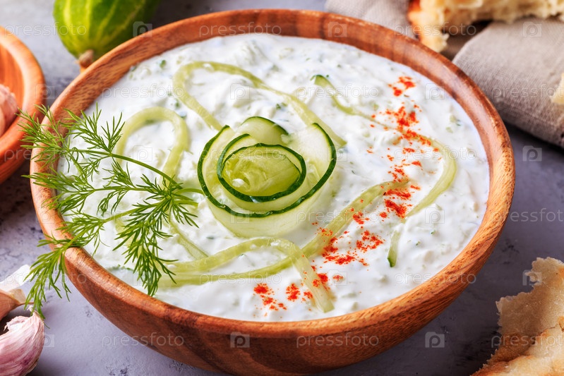 Греческий салат цацики из огурца, йогурта, оливкового масла, чеснока, укропа и специй