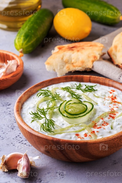 Греческий салат цацики из огурца, йогурта, оливкового масла, чеснока, укропа и специй