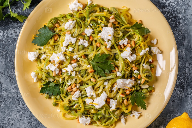 Домашняя паста zucchini Zoodles с кедровыми орехами и фетой