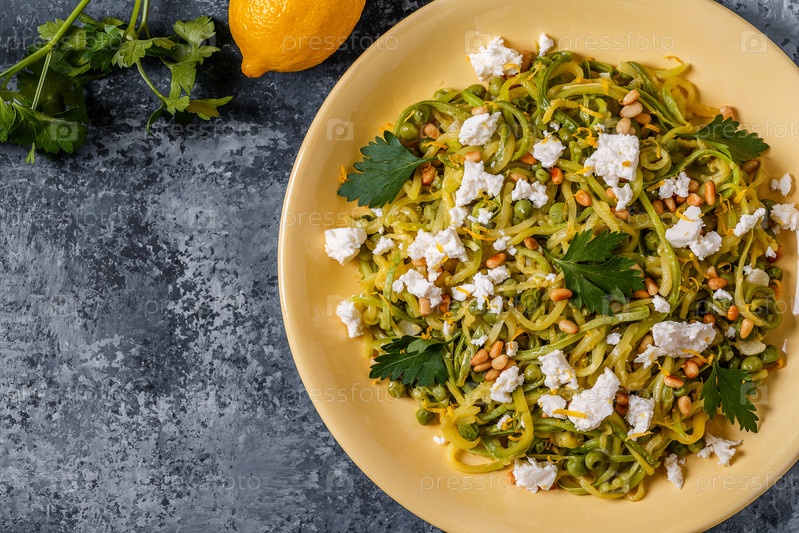 Домашняя паста zucchini Zoodles с кедровыми орехами и фетой