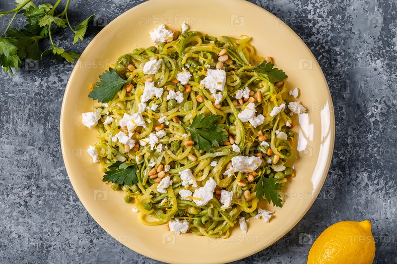 Домашняя паста zucchini Zoodles с кедровыми орехами и фетой