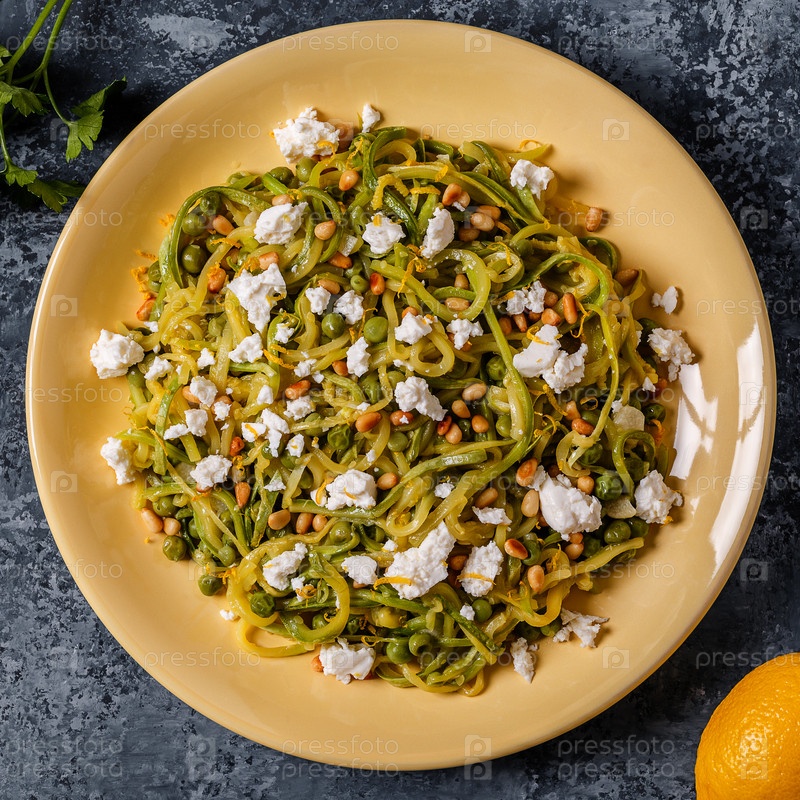 Домашняя паста zucchini Zoodles с кедровыми орехами и фетой