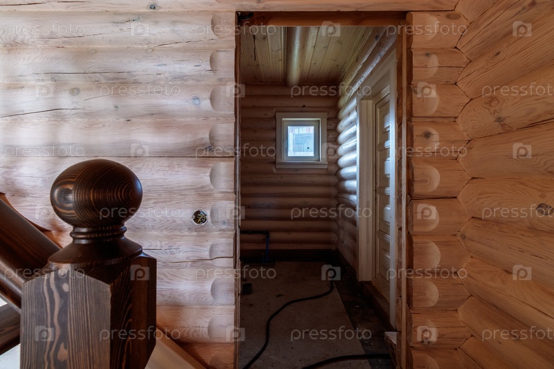 Двухэтажный деревянный коттедж изнутри в хвойно-еловом сосновом бору