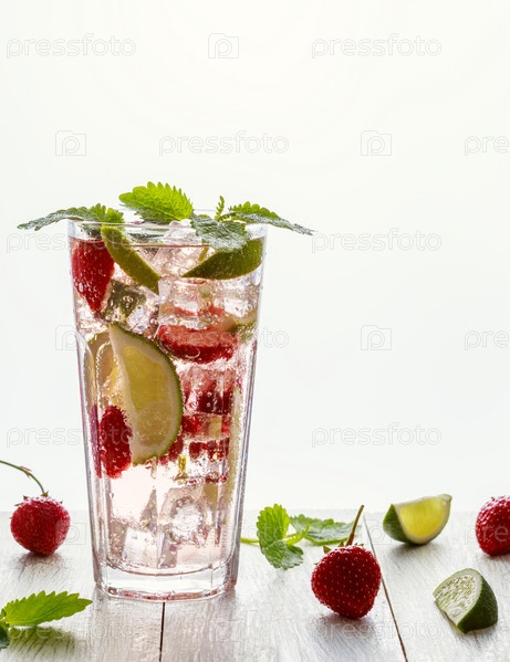 Домашний лимонад с клубникой, лаймом и мятой