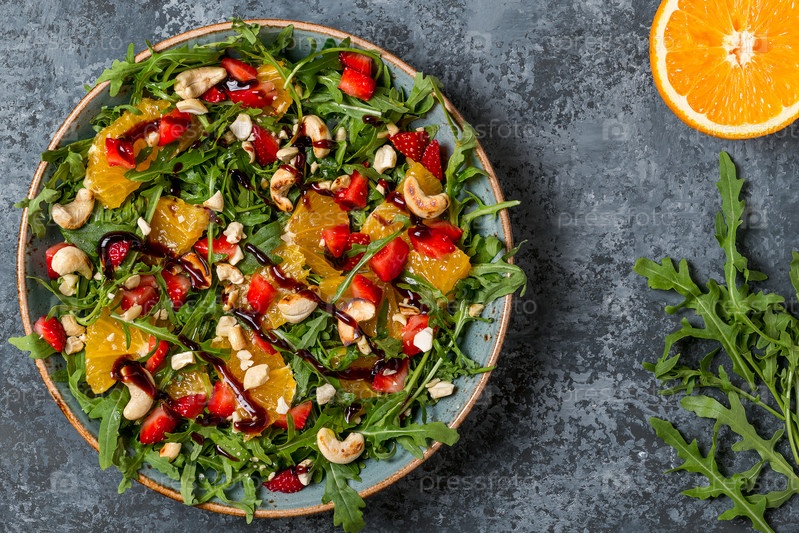 Свежий салат с рукколой, фруктами и орехами