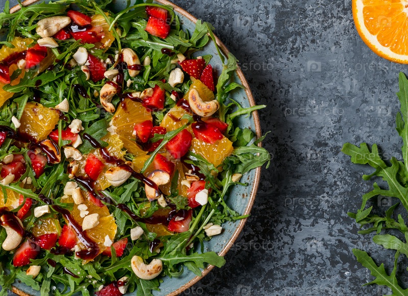 Свежий салат с рукколой, фруктами и орехами