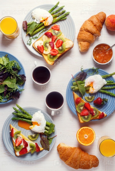 Стол с завтраком, вид сверху