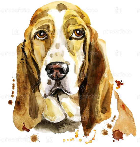 Милая собака. Графика на футболках с собаками. акварель бассет-хаунд