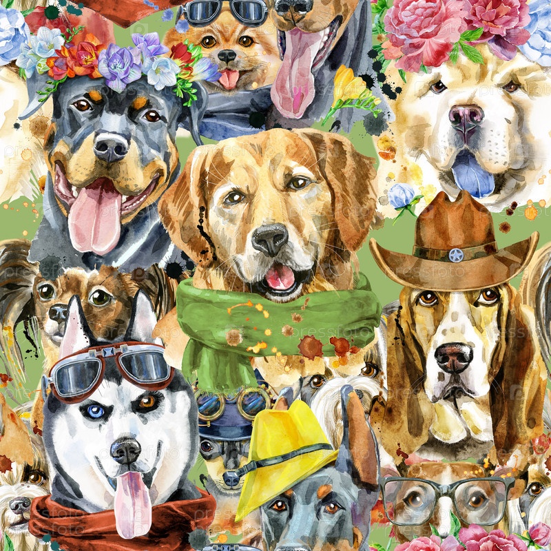 Акварель бесшовный рисунок собак на белом фоне
