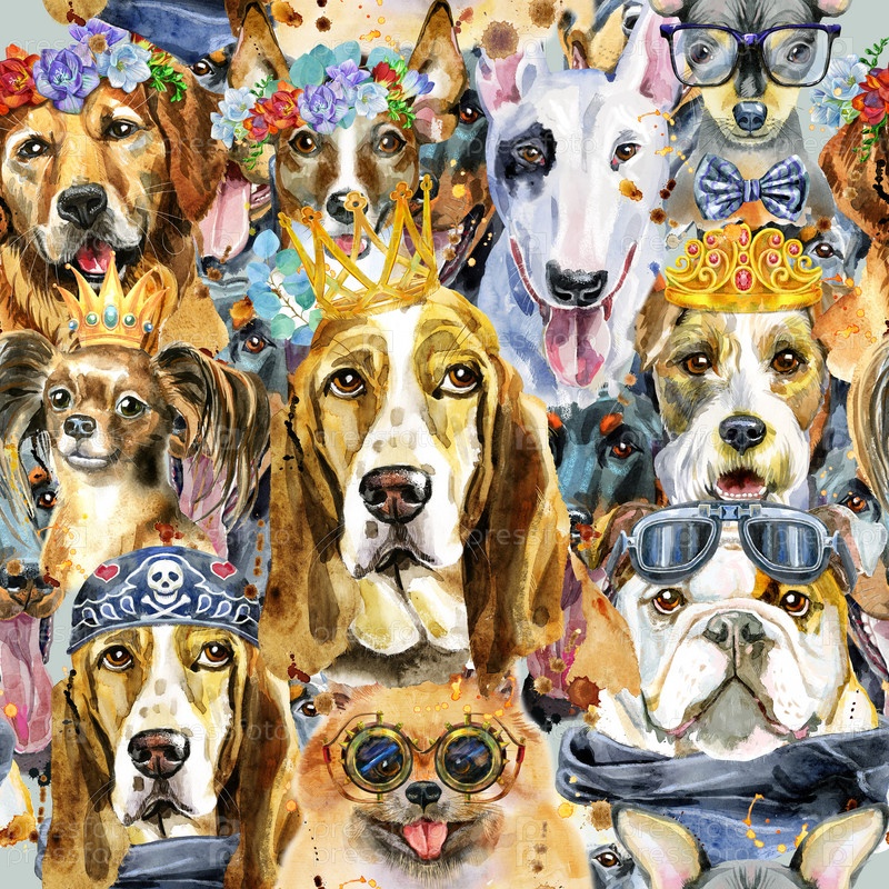 Акварель бесшовный рисунок собак на белом фоне