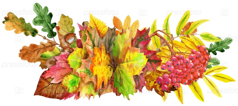 Осенний сезон цветочная рамка в стиле акварели: красочные оранжево-желтые бордовые красные осенние листья лесные кленовые ветки ягоды