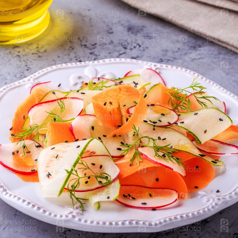 Вегетарианский салат из моркови, огурца и редьки