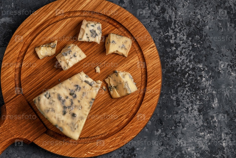 Кусочки голубого сыра на деревянной доске