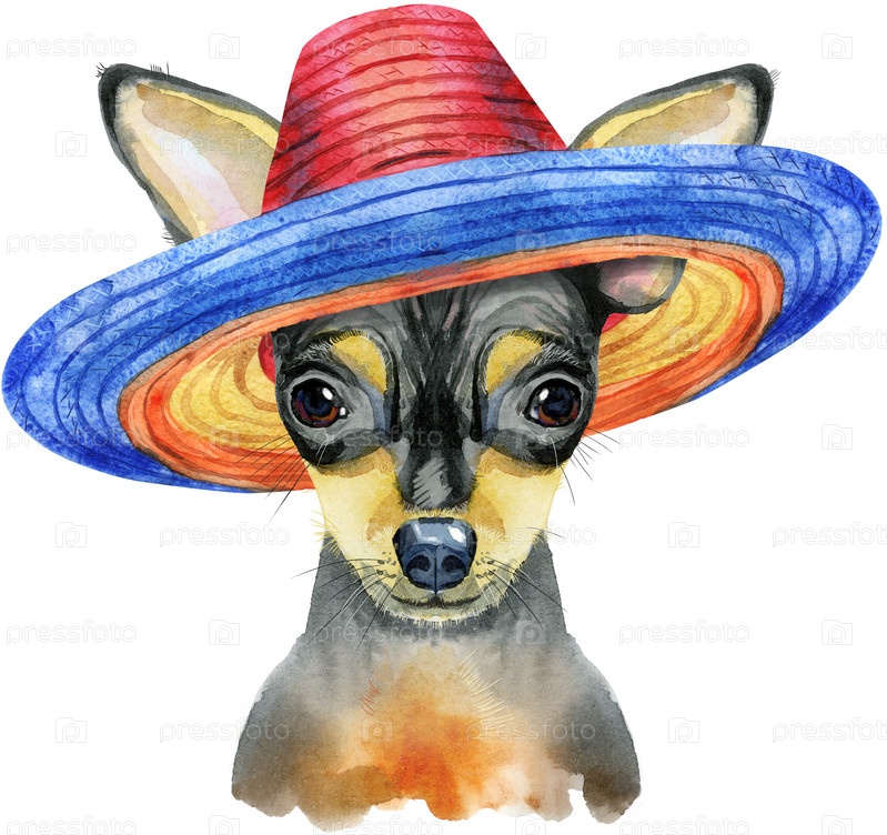 Акварельный портрет той-терьера в сомбреро