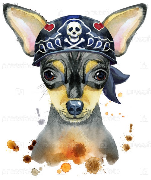 Акварельный портрет той-терьера в байкерской бандане