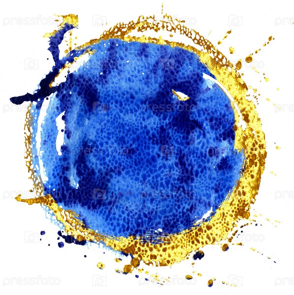 Синий и золотой акварельный круг на белом фоне