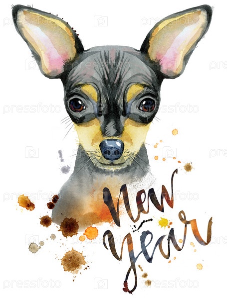 Акварельный портрет той-терьера