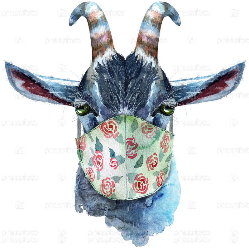 Коза в защитной маске гороскоп характер акварель иллюстрации, изолированные на белом фоне