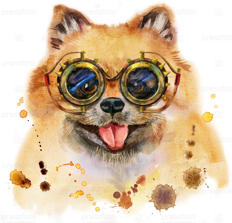 Милая собака. Графика на футболках с собаками. акварель померанский шпиц иллюстрация