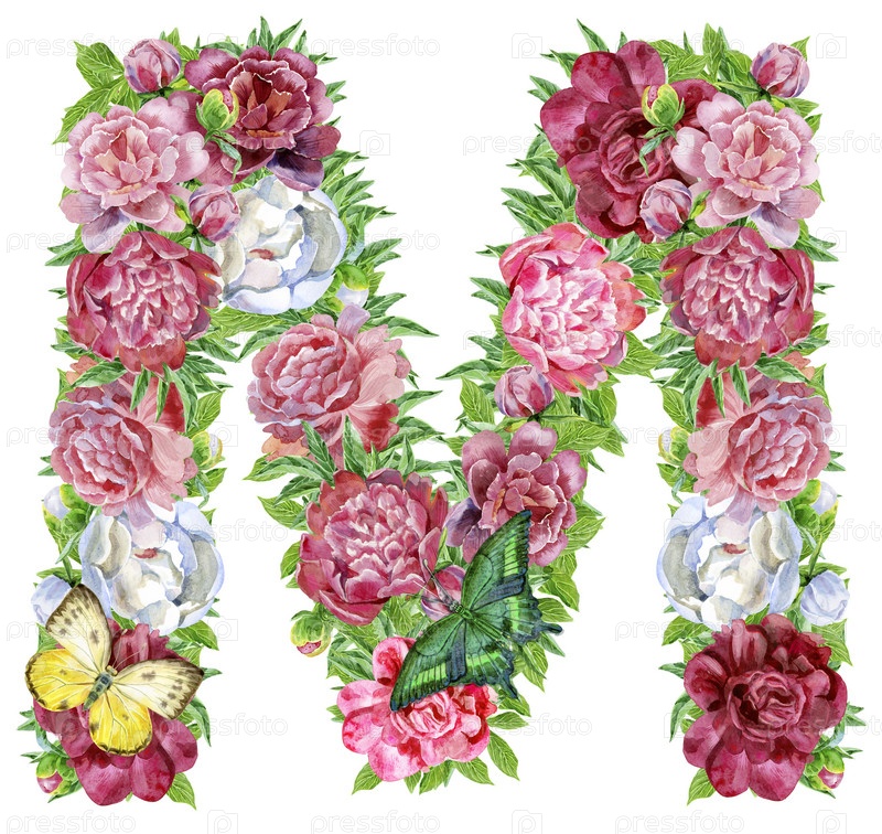 Буква М акварельных цветов