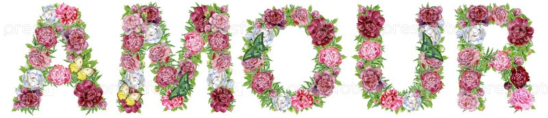 Слово LOVE из акварельных цветов для украшения