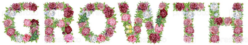 Слово рост акварельных цветов для украшения