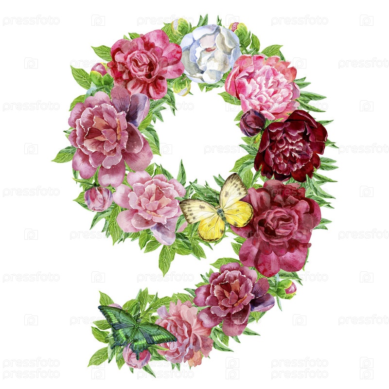 Номер девять акварельных цветов