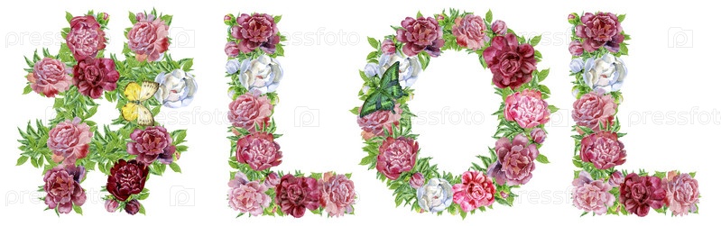 Знак хэштега со словом LOL из акварельных цветов для украшения