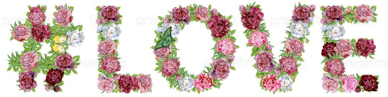 Знак хэштега со словом ЛЮБОВЬ акварельных цветов для украшения