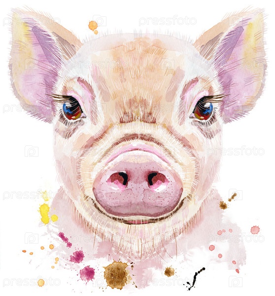 Милый поросенок. Свинья для графики на футболках. Акварельная розовая мини-свинья
