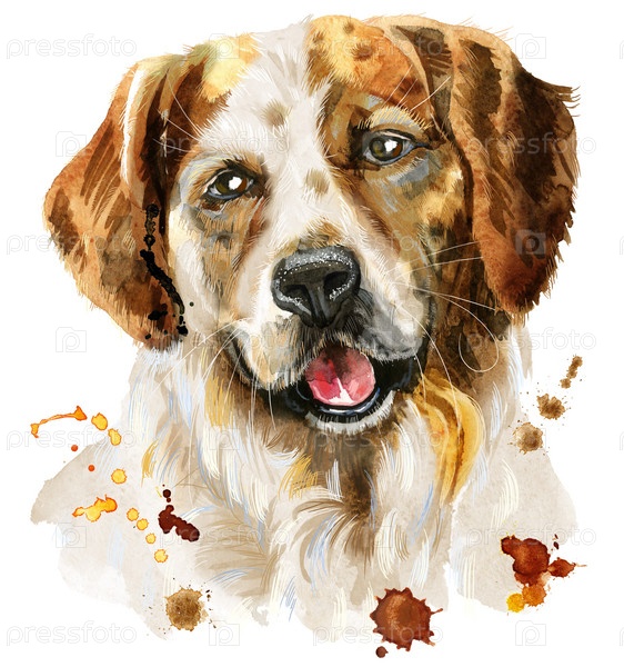 Милая собака. Графика на футболках с собаками. акварель трехцветная собака иллюстрация