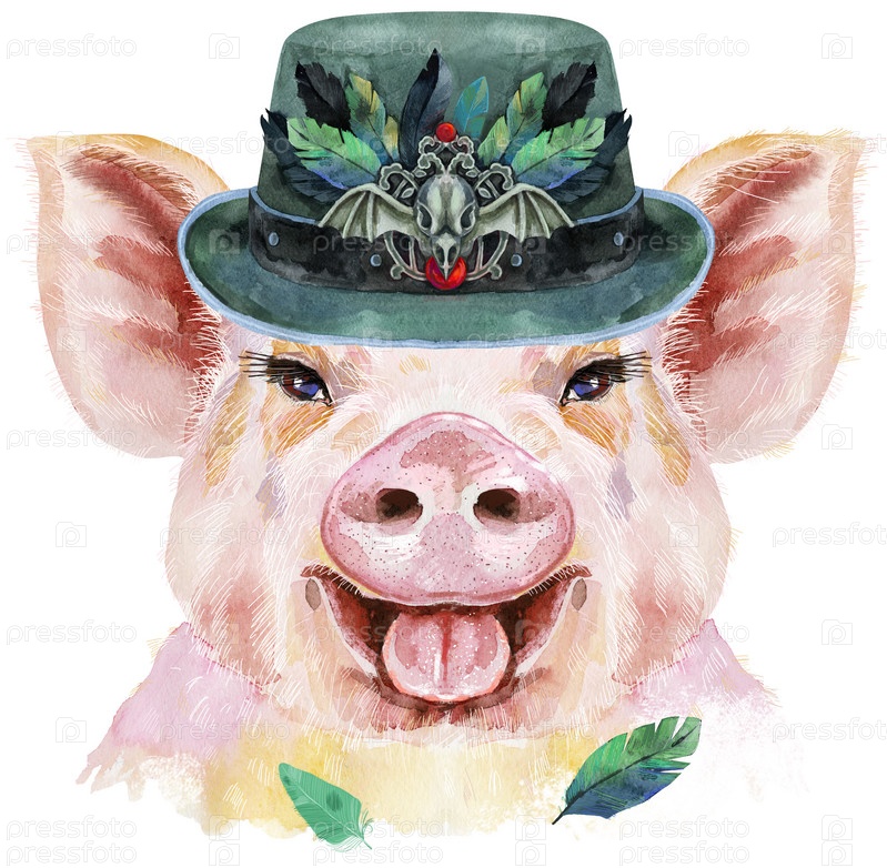 Милый поросенок в оливковой шляпе. Свинья для графики на футболках
