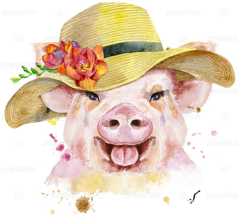 Милая летняя шапочка-свинка. Свинья для футболок с графикой