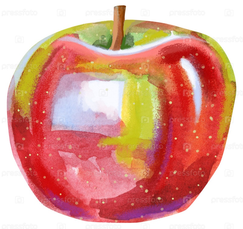 Ботаническая акварельная иллюстрация красного спелого яблока на белом фоне