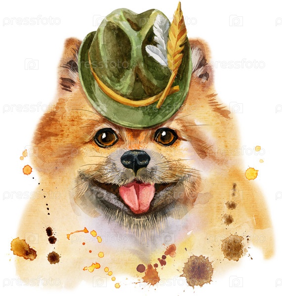Милая собака. Графика на футболках с собаками. акварель померанский шпиц иллюстрация