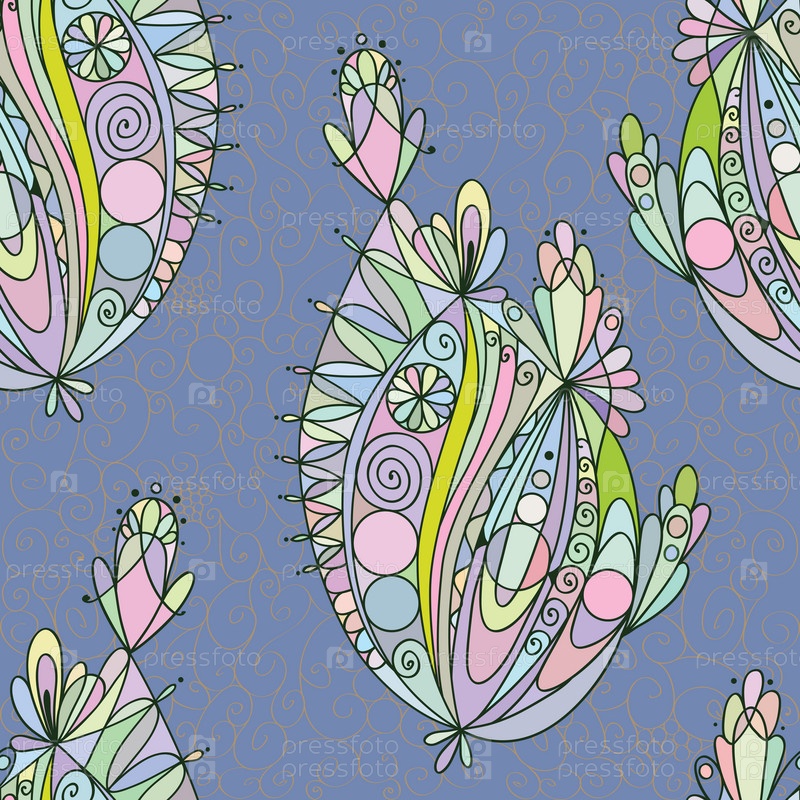 Бесшовные цветочные ретро-каракули нежно-розового и голубого цвета в векторе