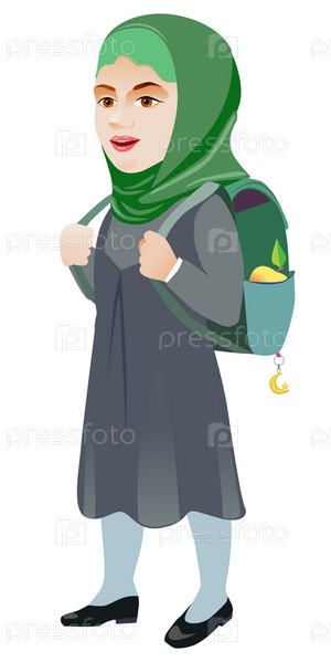 Радостная мусульманка спешит в школу