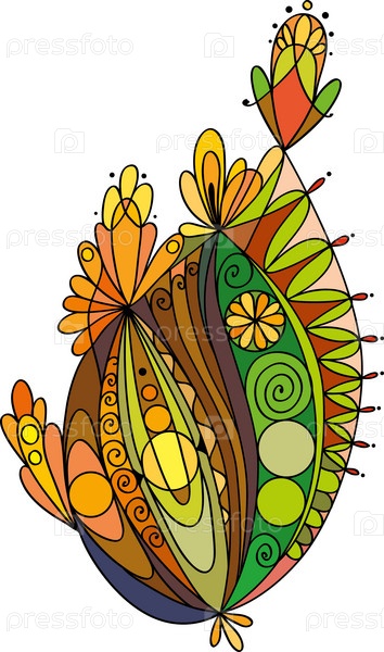 Цветочный узор для раскраски. Ретро, каракули, вектор, элемент дизайна. Он окрашен в осенние цвета