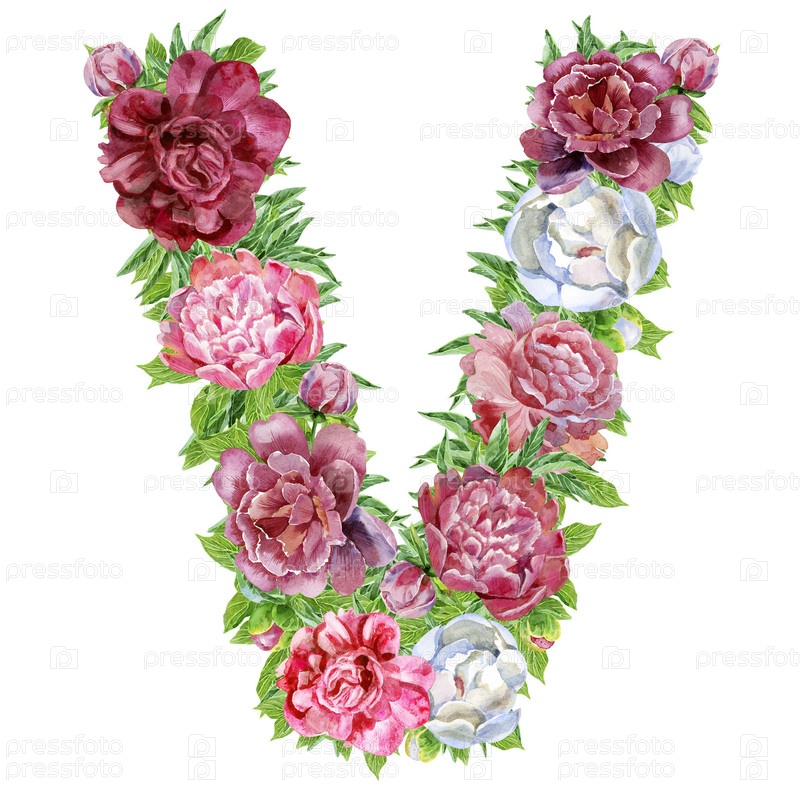 Буква V из акварельных цветов