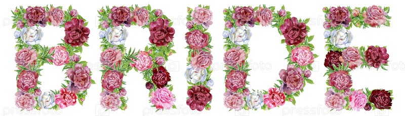 Слово Невеста из акварельных цветов для украшения