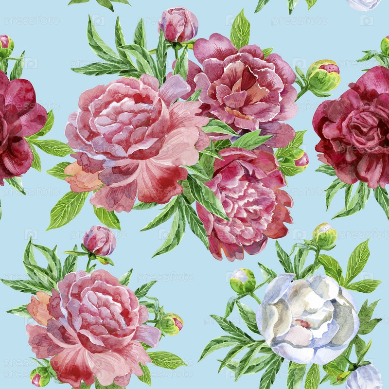Бесшовный фон с цветами пионов. Современный цветочный узор для упаковки, текстиля, обоев, печати, подарочной упаковки, приветствия или свадебного фона