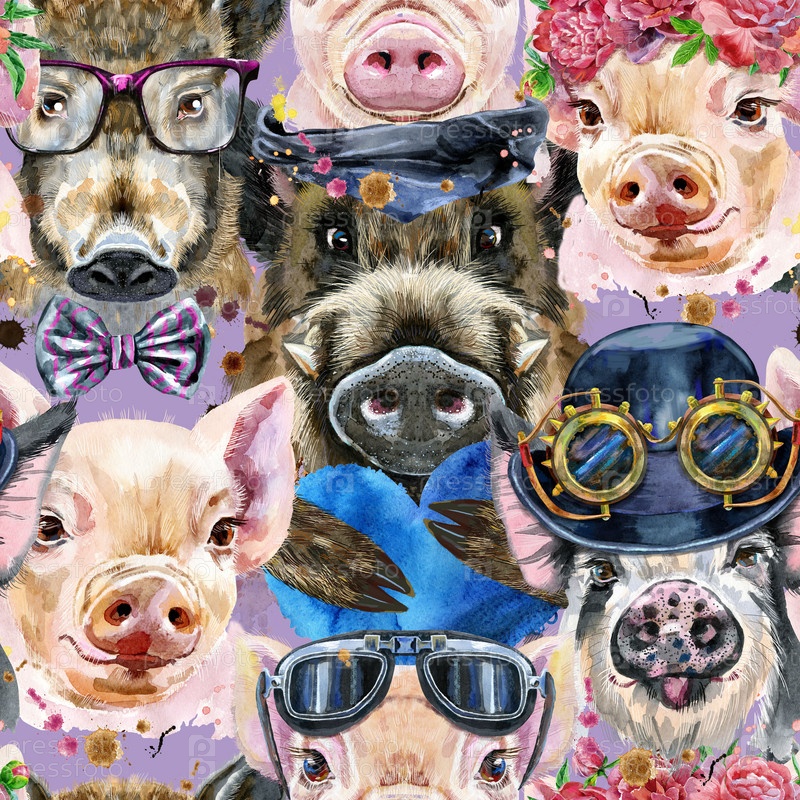 Бесшовный рисунок милых свиней для украшения