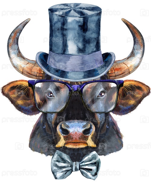 Акварельная графика быка. Бык животных иллюстрации акварель текстурированный фон