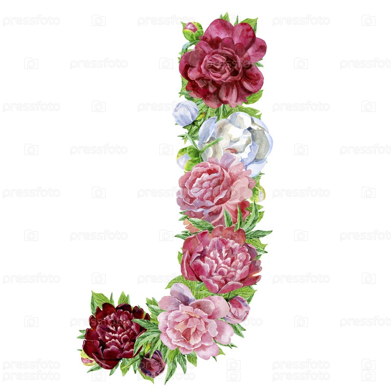 Буква J из акварельных цветов