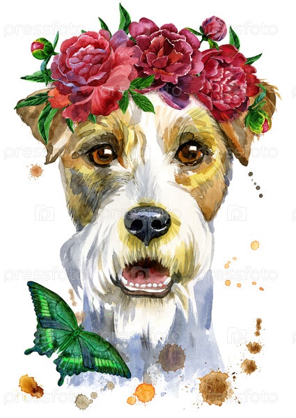 Акварельный портрет эрдельтерьера с цветами